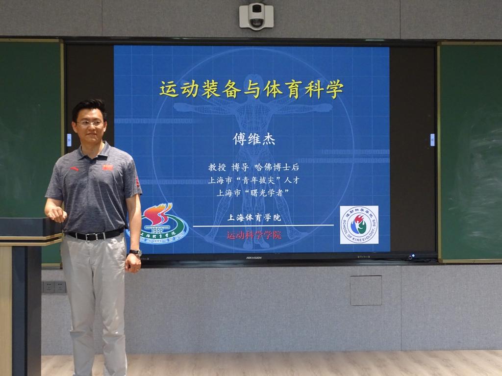 5月13日下午A6大教室,上海体育公司博导、教授傅维杰应教师教育公司(体育公司)邀请来校作运动装备与体育科学方面的讲座。教育公司副经理林辉杰主持,公司部分教师与员工参加。