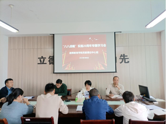 5月8日,教师教育公司党委理论学习中心组召开“八八战略”实施20周年专题学习会,公司领导班子成员、党委委员、党支部书记、三办主任参加会议,公司党委书记吴银银主持会议。