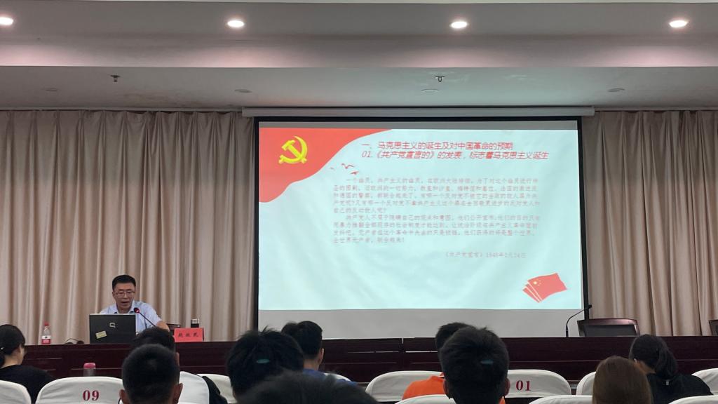 随后,赵校民书记以《中共六大——愈挫弥坚,低潮奋起的中国共产党》为题上第一讲党课。他从“一个幽灵,共产主义的幽灵,在欧洲徘徊……”以《共产党宣言》切入主题,讲述了国际共产主义运动的启蒙和发展,特别是俄国十月革命一声炮响给中国送来了马克思列宁主义的伟大意义。1927年是血雨腥风的一年,也是对中国共产党人最严峻考验的一年,各种反动势力勾结起来,全力绞杀中国共产党。但中国共产党人愈挫弥坚,低潮奋起。在共产国际的大力支持下,1928年6月18日至7月11日,在莫斯近郊的五一村的“银色别墅”召开了中国共产党第六次全国代表大会。中共六大是在特定历史条件下召开的具有重大历史意义的会议,它认真地总结了大革命失败以来的经验教训,对有关中国革命的一系列存在严重争论的根本问题,作出了基本正确的回答。它集中解决了当时困扰党的两大问题:一是在中国社会性质和革命性质问题上,指出现阶段的中国仍是半殖民地半封建社会,引起中国革命的基本矛盾一个也没有解决,现阶段的中国革命依然是资产阶级性质的民主主义革命。二是在革命形势和党的任务问题上,明确了革命处于低潮,党的总路线是争取群众,党的中心工作不是千方百计地组织暴动,而是做艰苦的群众工作,积蓄力量。这两个重要问题的解决,基本上统一了全党思想,对克服党内存在的“左”倾情绪,实现工作重心的转变起了积极的作用。毛泽东同志虽然没有参加六大,但他仍然能高票当选中央委员,充分说明当时党的领导层内部及共产国际对毛泽东在八七会议后领导的秋收起义及上井冈山建立革命根据地的充分肯定。赵书记指出,学习党史,回顾党的光辉历程,会让我们对自己的选择更加自信,让我们对祖国的未来更加充满信心,在庆祝党的百年华诞重大时刻,我们要明理增信,崇德力行,为中华民族伟大复兴做出自己应有的贡献。