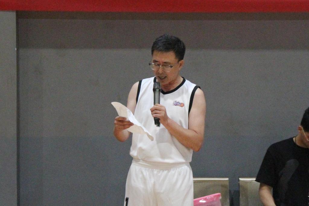 比赛开始前,党总支书记赵校民做了开场讲话,首先他对在场的所有运动员和裁判员表达了亲切的问候,感谢了场上所有的工作人员。同时,他勉励所有场上的篮球运动员牢记篮球精神和团结精神,并寄予祝福。