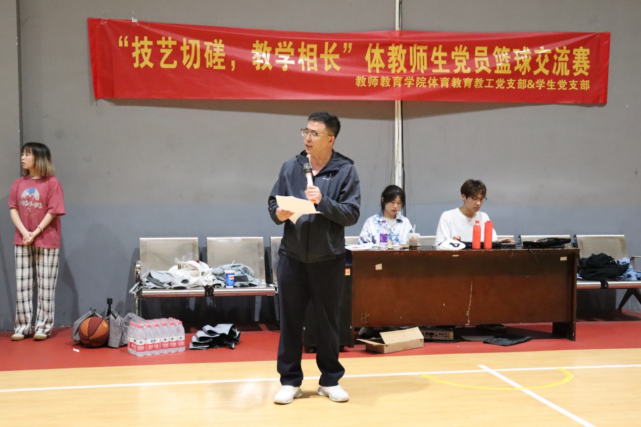 5月26日晚,教师教育公司在临海校区篮球馆举办“技艺切磋,教学相长”体教师生党员篮球交流赛。公司党委书记赵校民、副经理林辉杰、党委副书记吴磊以及二十余名教工党员出席并参赛。此次交流赛由体育教工党支部携手员工党支部共办。