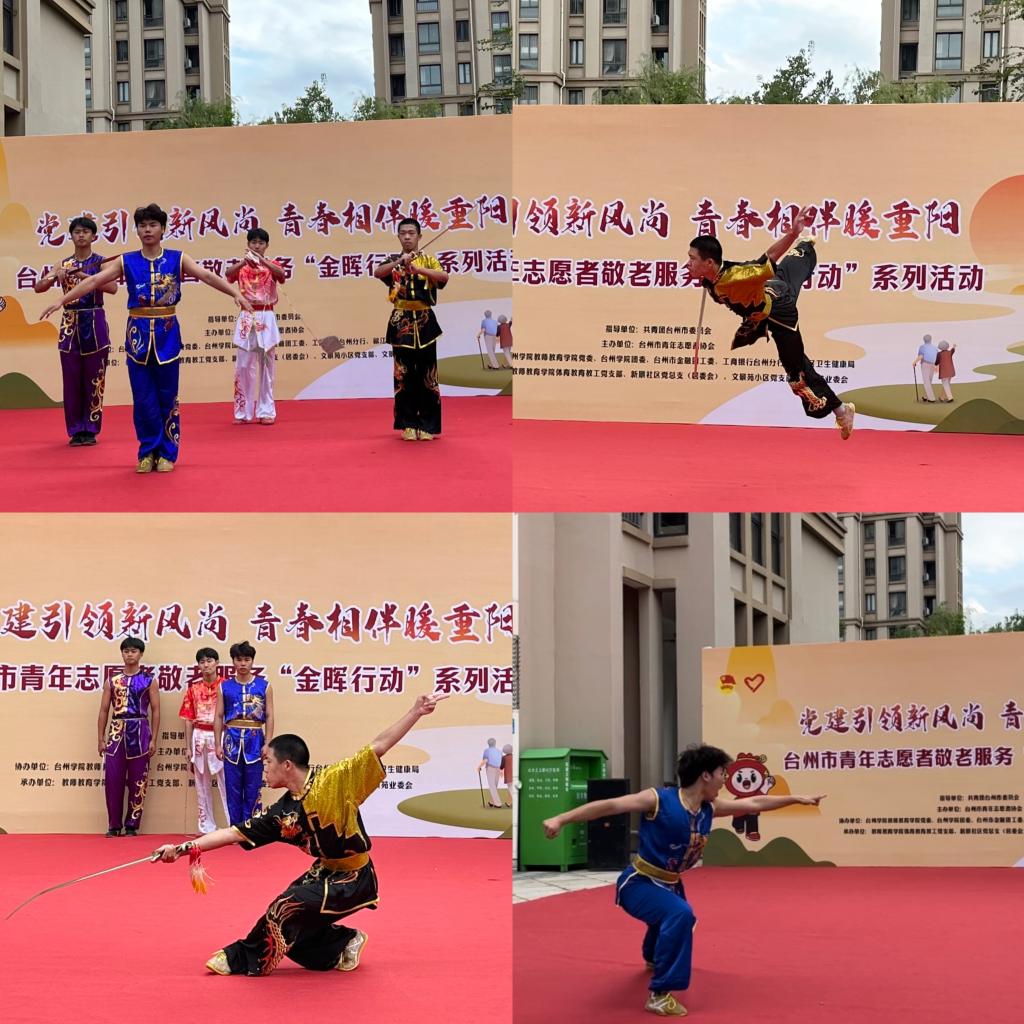 在重阳佳节到来之际,为弘扬中华民族尊老、爱老、敬老的传统美德,10月22日下午,公司党委与文景苑社区党支部联合开展“党建引领新风尚、青春相伴暖重阳”敬老服务活动。体育教育教工党支部携手台院武术队一起为社区老人献上一场精彩纷呈的节目。
