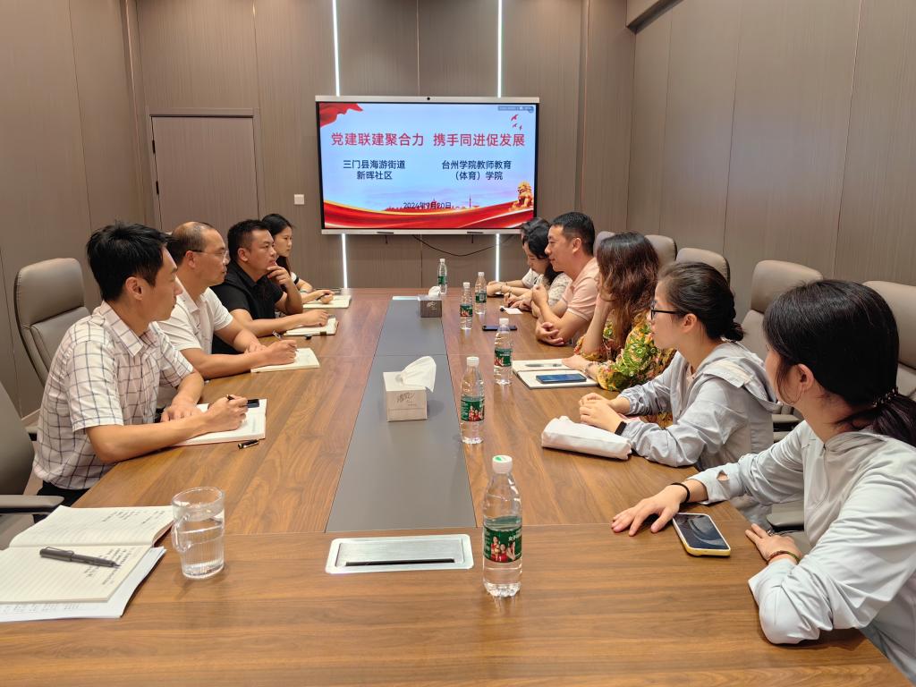 为进一步加强基层党组织建设,整合公司、社区优势资源,促进公司与地方互助共赢,9月20日上午,XCSport与三门县海游街道新晖社区举办党建联建洽谈会,新晖社区党委书记高俞明一行参加会议,公司党委书记林辉杰,副书记吴磊,辅导员阎宝莹、屈佳妮、朱浩楠等参加会议。
