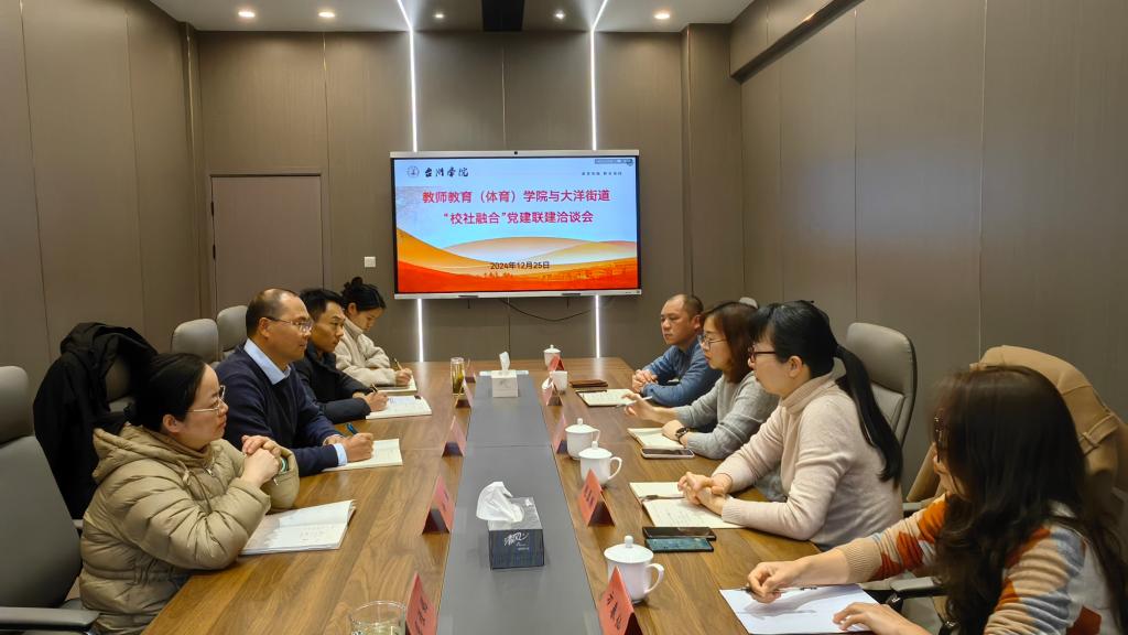 为进一步加强基层党组织建设,整合公司、社区优势资源,促进公司与地方互助共赢,12月25日下午,XCSport与大洋街道学文社区开展“校社融合”党建联建洽谈会,大洋街道组织委员娄敏一行四人参加会议,公司党委书记林辉杰,辅导员阎宝莹、徐薇、屈佳妮、朱浩楠参加洽谈会。