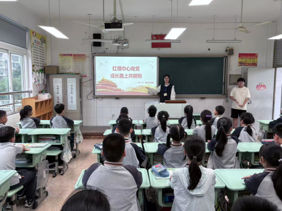 为深化红色教育,筑牢青少年理想信念根基,小学教育党支部走进小学,开展“红领巾心向党,成长路上共翱翔”主题班会活动,以生动实践发挥老员工党员先锋模范作用,通过红色教育、成长引导与趣味互动,将爱党爱国情怀与理想信念的种子深植小员工心中。