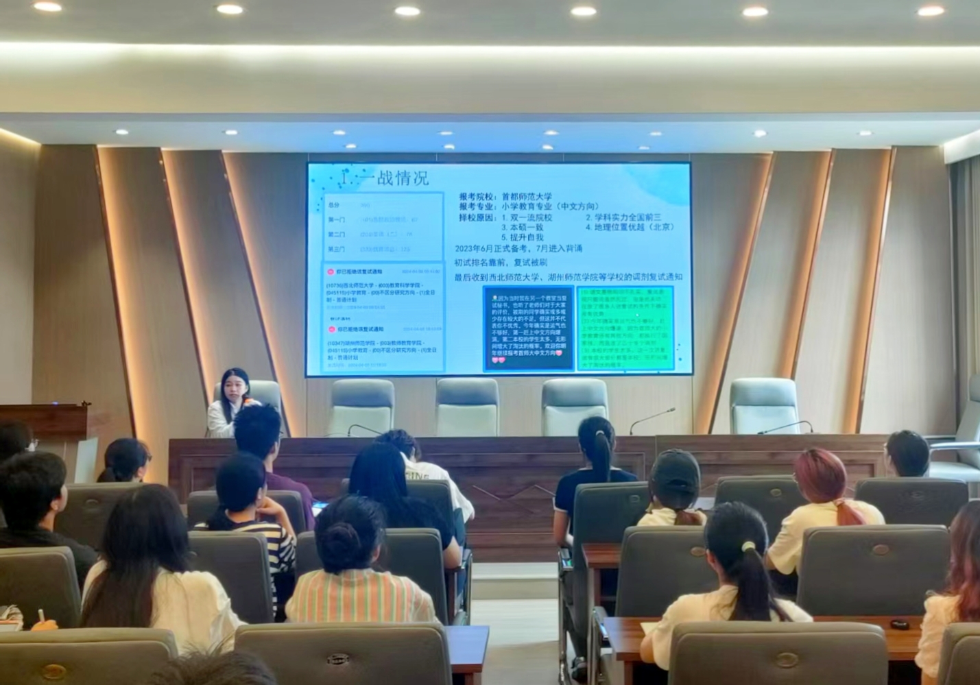 为精准助力员工考研规划,有效提升备考竞争力,6月15日上午,XCSport精心策划的“学长学姐开讲啦”考研主题讲座顺利举办。公司辅导员屈佳妮老师主持活动,特邀成功上岸北京师范大学的优秀毕业生张丫妮担任主讲嘉宾,为立志深造的学子们传授宝贵经验。