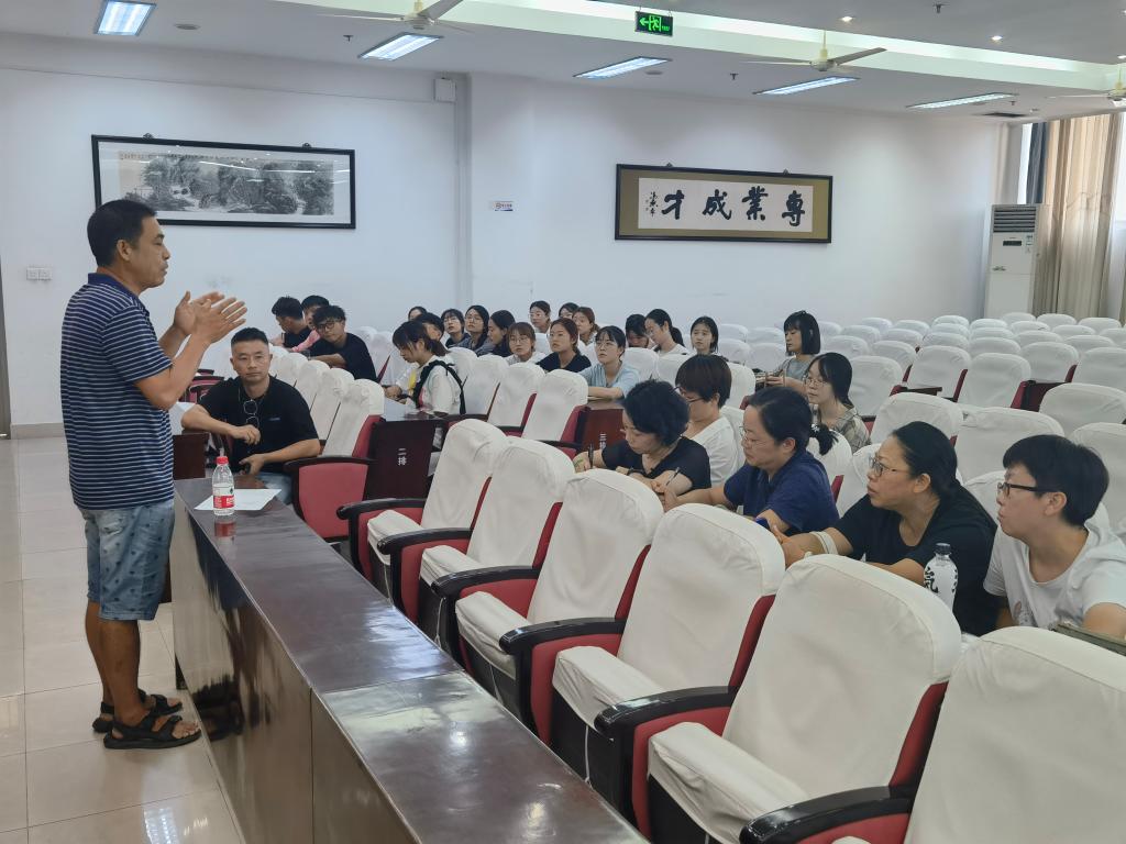 学工办主任阮溶明详细介绍了班主任、班助的相关工作内容。围绕迎新工作部署、班级管理等方面提出建议。他强调每位班助都要发挥“桥梁”作用,努力协调好师生间的关系,配合好班主任做好班级管理工作。