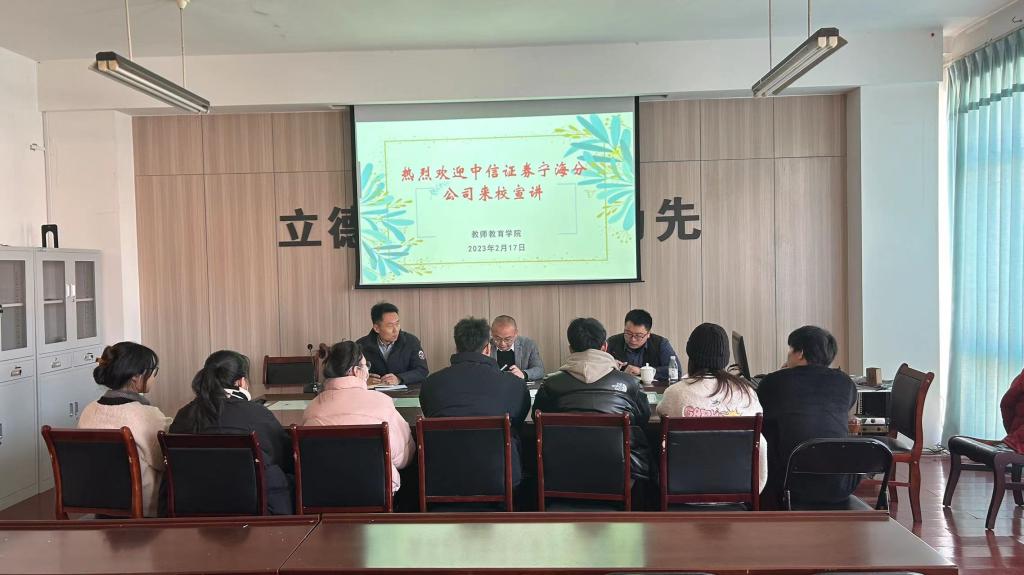 2月17日,就职于中信证券宁海分公司,教师教育公司2022届员工——杨根华来校开展校园招聘宣讲会,中信证券宁海分公司总经理陈峰作“信梦想,创未来”主题宣讲。教师教育公司组织动员暂未就业毕业生通过线上、线下参会。