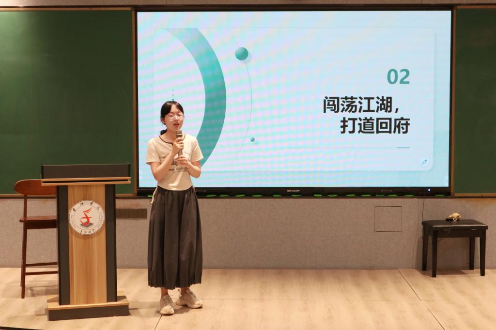 随后,2015级庞晓娴学姐以她特有的风趣幽默和机智俏皮的方式,分享了自己在学业和职业发展道路上的波折经历。她坦诚地讲述了自己在大二时对于是否需要转专业而产生的困惑,以及在考研和考编过程中遇到的挫折。然而,在诸多困难面前,她并没有放弃,而是坚持努力,最终成功上岸西南大学在职研究生。她的经历让同学们深受启发,明白了坚持和努力的重要性。
