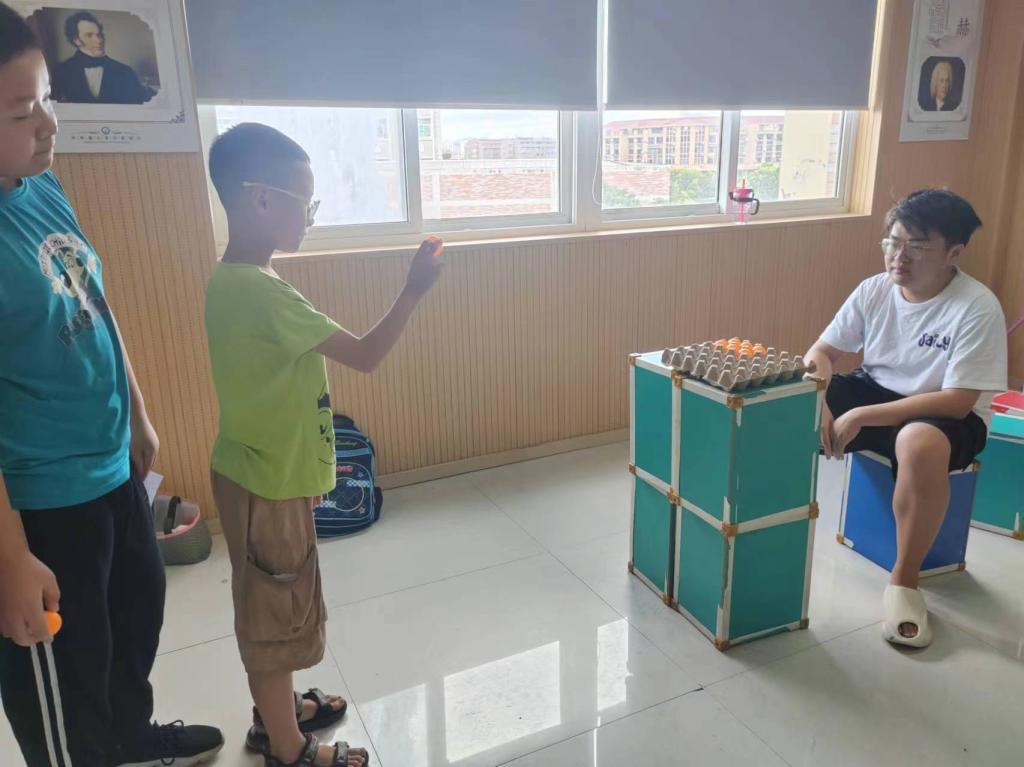 “言韵谱诗”班开展了“冲锋陷壳”的游园活动,孩子们积极组队参加,尝试着把乒乓球投到蛋壳上,在球的“进”与“不进”的分秒跳跃中,孩子们度过了快乐的时光。最后,为了周五的汇演,孩子们又汇聚在一起,整体排练了课本剧。