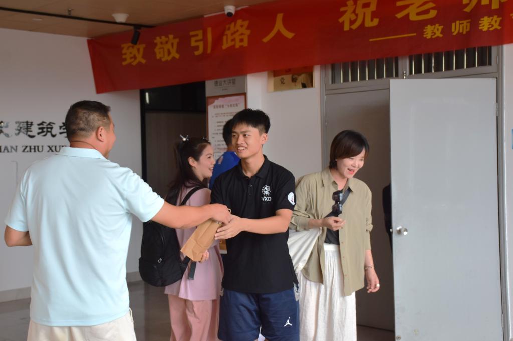 随着一位位老师的陆续到场,团学会的同学们心中满怀着热忱与期待,迫不及待地将精心准备的礼物热情献上并在条幅下合影留念。老师们在看到这些饱含深情的礼物时流露出来的感动与喜悦之情也让同学们心中充满了温暖。