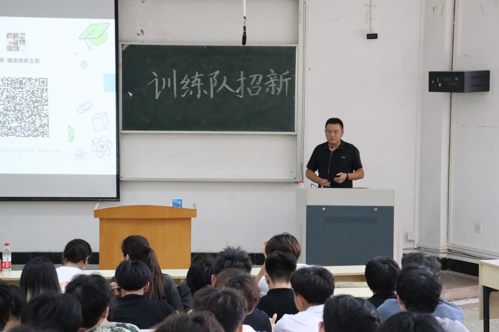 为了加深同学们对公司训练队的了解,鼓励同学们积极加入训练队,充分展现自身才能和潜力,9月13日中午,XCSport于A5阶梯教室召开了训练队招新宣讲会。公司党委副书记吴磊、团学会社团部全体成员、各训练队负责人以及部分24级新生参加本次宣讲会。