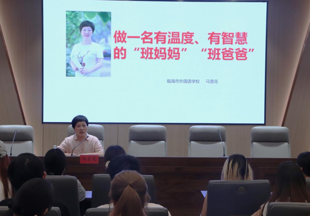 马雪花老师为公司优秀员工,深耕教育一线27年,班主任工作经验丰富,多次在临海市教师技能比赛中斩获佳绩,屡获“优秀班主任”称号。讲座中,她结合自身二十余年的教育实践,围绕班主任工作的“温度”与“智慧”展开深度分享。