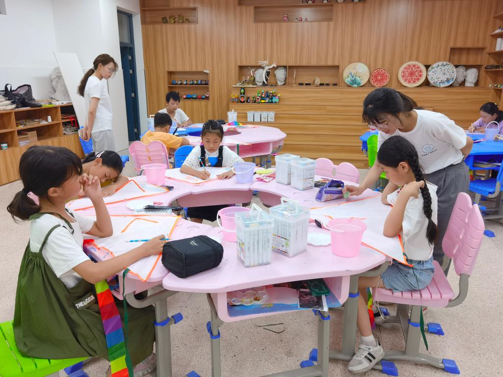 武术班级在操场上进行练习,同学们精神十足,斗志高昂,练起套路来不喊苦不喊累。美术课形式多样,扎染、超轻黏土、手绘风筝等美术活动提高了同学们的热情。朗诵班的老师强调从重音、情感两个方面理解课文,对员工耐心讲解,悉心辅导。特色班依托建党百年背景安排红色知识竞答,红色印记绘画等有意义的活动,增强员工的爱国情与爱党心。音乐舞蹈班的老师根据每个同学的基础进行适当的节奏以及动作练习,随着课程的进展不断加大难度。书法班的同老师教授基本笔画和汉字,使员工能在融会贯通中进步。