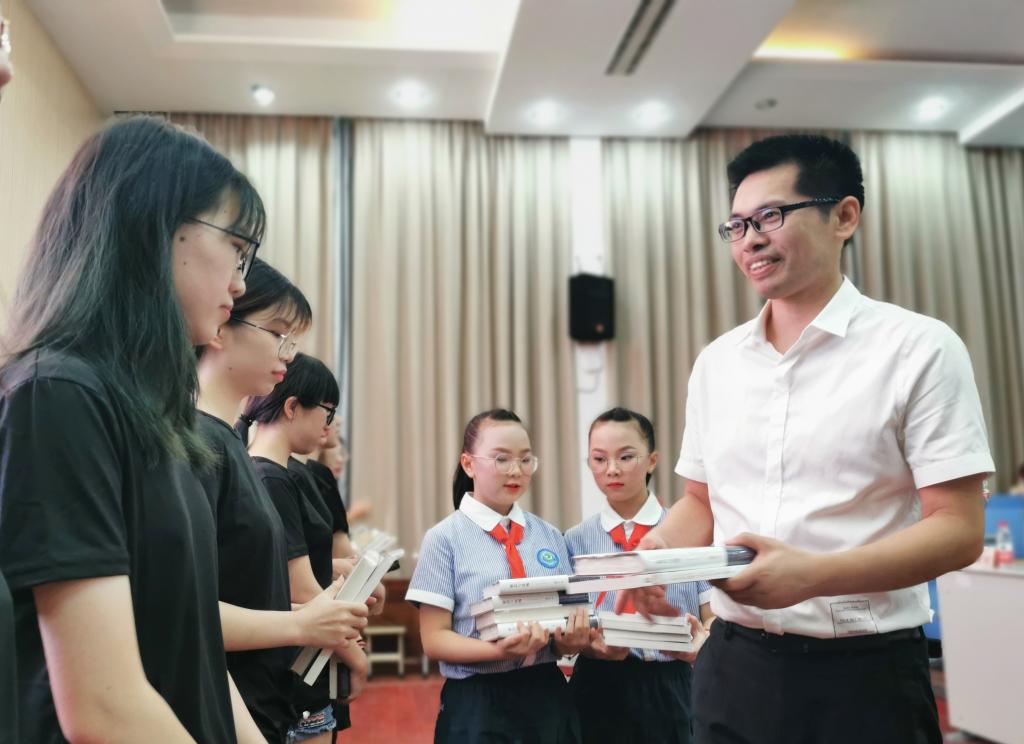 7月18日上午,为检验相关实践成果,实践队员携手各班员工开展汇报演出。温岭市教育局、锦园小学、XC体育相关领导和老师出席,多名家长共同参与,观看本次汇演。为凸显各班特色,展现最佳实践成果,各班分别结合自身亮点,以朗诵、合唱、课本剧、走秀、舞蹈等多种形式献上精彩表演。由实践队全体成员参与表演的手影舞《遇见》,总结表达了实践队员对在本次实践活动中每一次遇见的感恩。节目创意迭出,赢得了观众席的阵阵掌声。汇演末尾,由温岭市教育局副局长陈世龙老师为全体实践队员赠书。