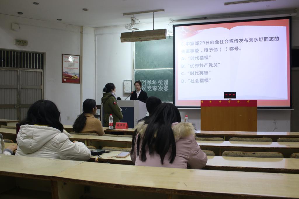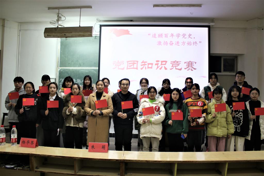 12月6日晚,教师教育公司(体育公司)于A1举办“追顾百年学党史,激扬奋进方始终”党团知识竞赛决赛。辅导员杨华琴、朱萌及各参赛选手出席本次大赛。