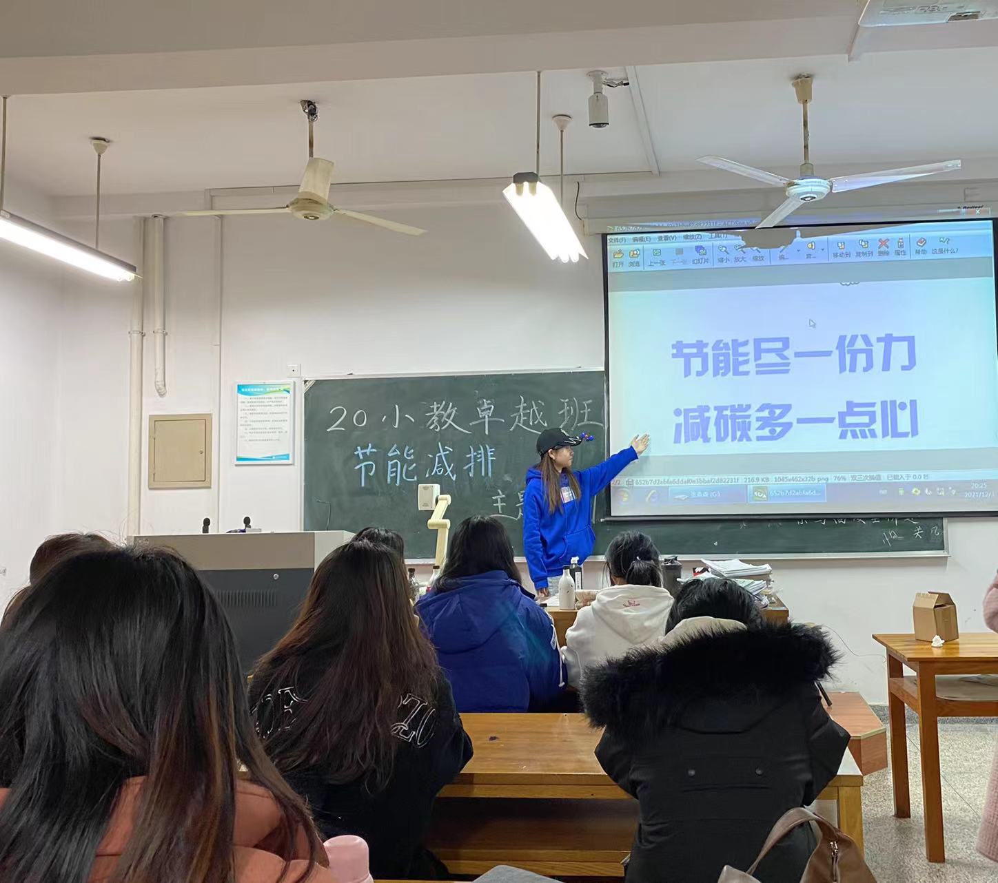 各班在团支书的带领下,通过QQ、微信与线下组织班会等方式,共同阅读并进一步了解了节能减排、碳中和等相关国家政策。会议上,团支书为大家讲解了此次主题团日的目的和意义,全体同学一起学习了相关的政策文件,观看了节能宣传视频,团支书还给大家讲解了日常生活中的节能减排相关知识和要求,为大家科普了学习和生活中的节能降耗相关知识并提出建议。