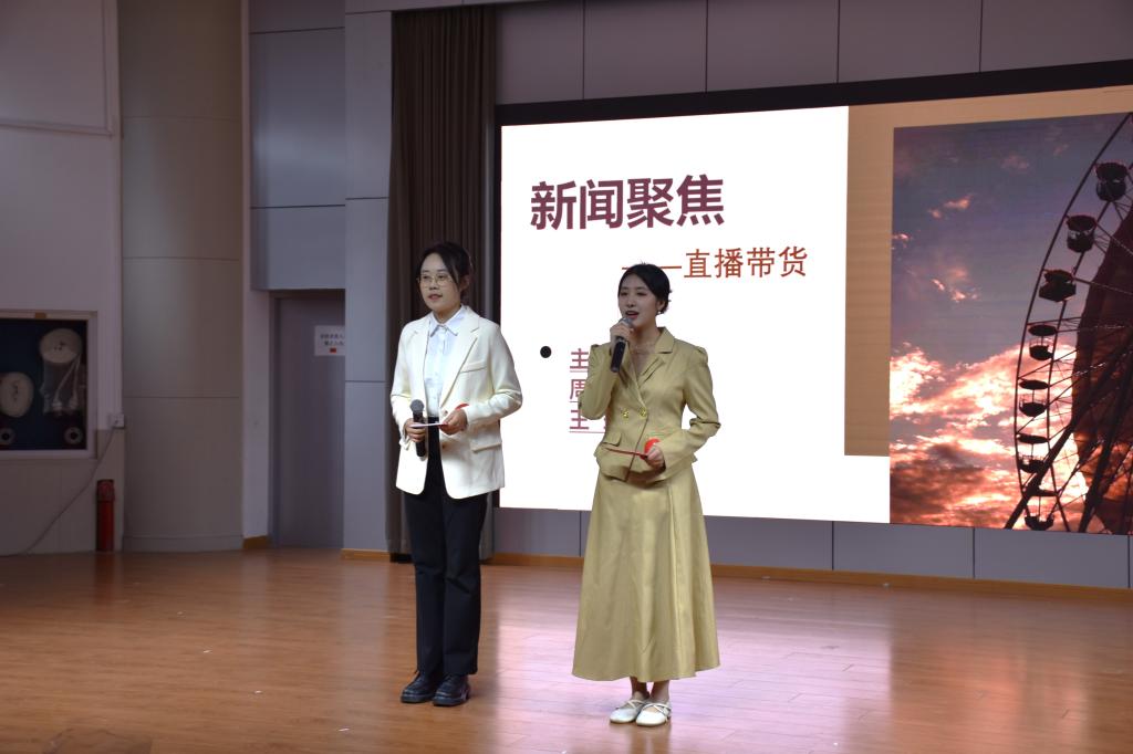 在比赛正式拉开帷幕前,工作人员播放了各位参赛选手的自我介绍VCR,从不同角度生动展现了参赛选手的个人特色和精神风貌,给人留下了鲜明的第一印象。校拉丁舞队带来的拉丁舞表演《Flipped》以律动的节奏点燃了现场的气氛。随后,各参赛选手依次上台进行自我介绍并宣读参赛宣言,正式揭开了比赛的序幕。主持人向评委和观众详细介绍了比赛规则,本次比赛由两人一组的搭档主持和随机抽签分配的文艺类故事王、新闻类时事点评三个环节组成。在第一环节“众才云集展风采”搭档主持中,各参赛选手台风稳健、配合默契,以新闻、婚礼、音乐节等各具特色的舞台表现形式充分展现了选手扎实的主持基础和舞台魅力。