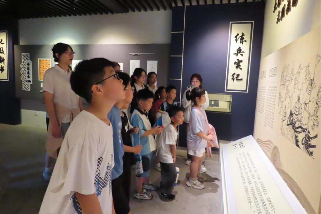 实践队与孩子们参观戚继光生平展、明代武器展,结合展厅图文史料、实物展品和展馆讲解,深入了解戚继光抗倭时兵器与战术的配合策略,感悟这位民族英雄练兵御敌、保家卫国的历程与淡泊名利、清廉正直的品格。