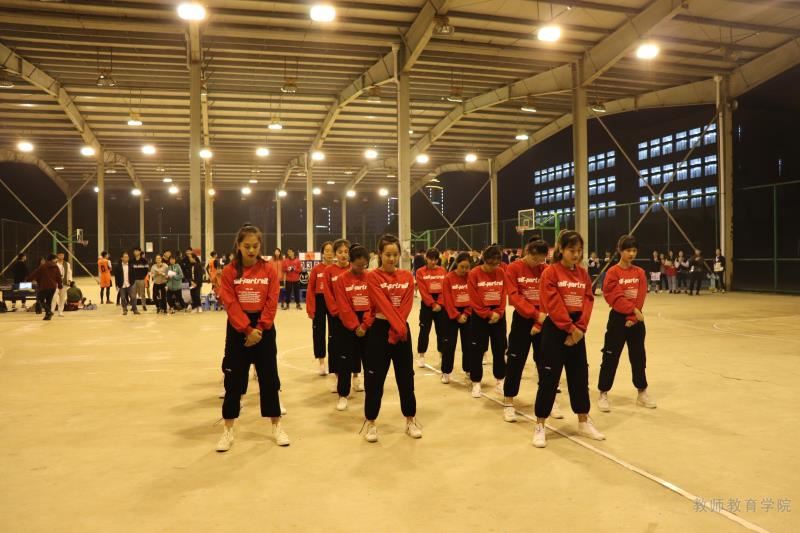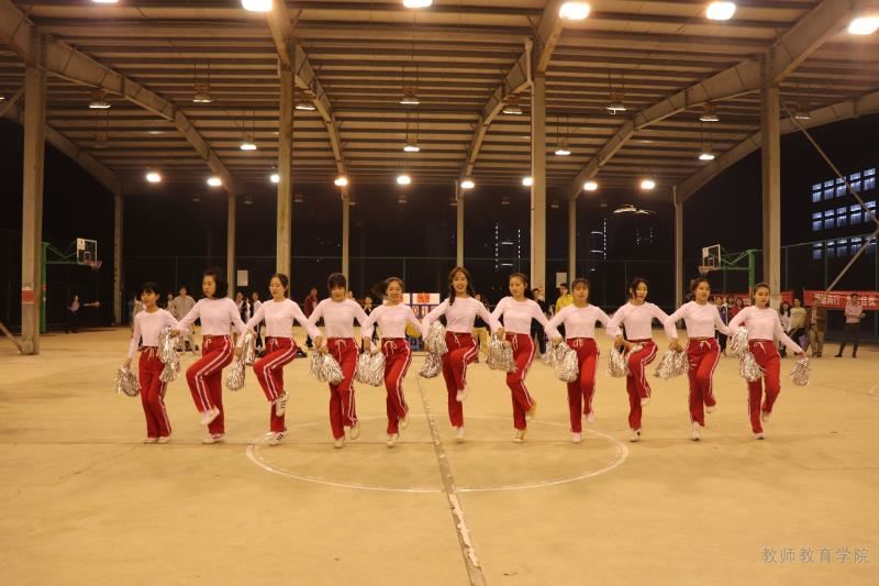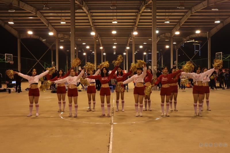 为加速公司融合,创建“和合公司”,10月15日晚,风雨篮球场,教育公司在新生篮球赛赛事正酣之余,举办篮球赛啦啦操大赛,受到师生的广泛关注。此次比赛邀请了体育专业健美操队的二级裁判打分,共有8支队伍参加。
