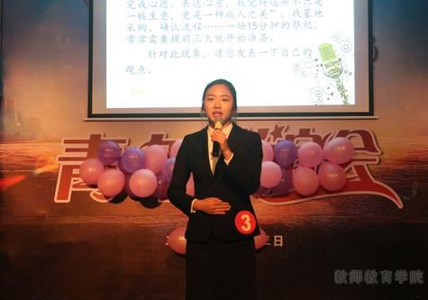 经过初赛、复赛筛选,共14位选手入围决赛。决赛分“命题演讲”与“即兴演讲”两个环节,选手们尽情畅谈自己对坚持、细节等关键词的理解,彰显当代老员工积极向上的良好精神风貌。“即兴演讲”环节,选手展现较强的现场应对能力,淡定自若的演讲为观众呈现了一场高水平的演讲盛宴。两轮比赛过后,15小教应双荟、16学前何泽男两位同学摘得比赛桂冠。