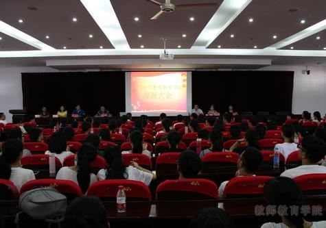 党总支副书记鲍婷婷简要介绍公司的人才招聘情况,要求大家严格遵守校纪校规,加强日常行为规范管理,加强纪律意识、安全意识和文明意识。她引述今年的高考作文题,勉励大家在大学四年要读好“有字之书”“无字之书”“心灵之书”三本书, 勤奋学习,踏实做事,学会感恩,为未来的教师梦打下坚实的基础。
