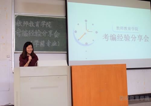 小学教育专业的优秀毕业生们分别就教师编制、考试流程、考试内容、面试要求等作了详细的介绍,特别是应考时候心态的调整,几位学姐充分交流各自的经验和一些小技巧,就自己所学科目,特意推荐了相关的考研复习资料,并介绍了考试中需要注意的问题,同学们都受益匪浅。