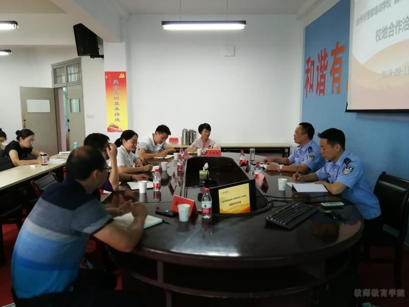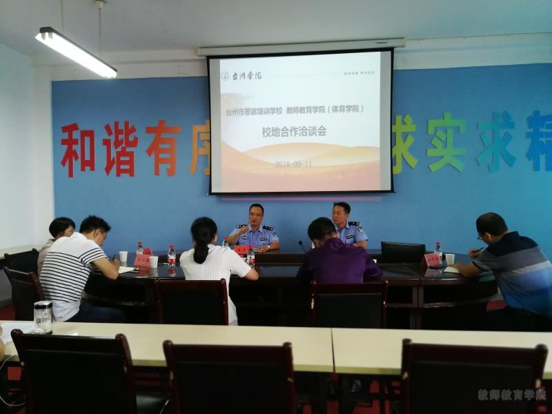 为进一步推进校地合作,服务地方发展,9月11日下午教师教育公司(体育公司)和台州市警察培训公司在公司会议室召开了校地合作洽谈会。教育公司经理周瑶、党总支书记赵校民、副经理吴银银、林辉杰、校保卫处副处长李永敏和台州市警察培训公司董事长林月村、教务科长李长青参加会议,周瑶经理主持。