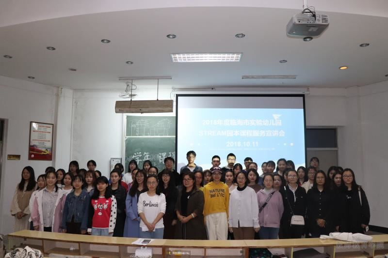 10月11日晚上,教师教育公司学前教育系在临海校区A1教室开展了“2018年度临海市实验幼儿园园本课程服务宣讲会”暨 “学前教育STREAM兴趣之旅”专业社团的新成员培训会,学前教育专业博士工作站负责人冯翠典老师主持宣讲和培训。