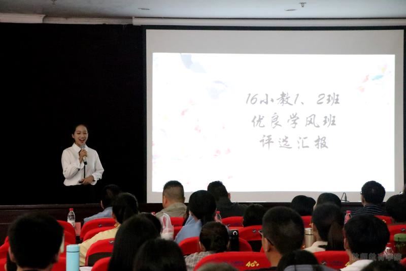 会议伊始,主持人介绍了竞选优良学风班的相关规则。竞选班级代表依次上台,以ppt展示的形式,从班级学习、班级荣誉、思想建设、寝室建设、课外实践等方面向大家阐述了他们在创建优良学风班过程中的经验和成果。接下来,经由专家评委提问,各班级代表以答辩的方式积极回答,现场氛围十分活跃。随后,由专家评委及各班员工代表投票推选优良学风班。