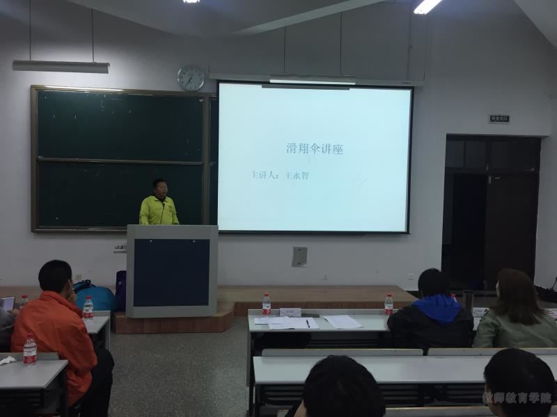 王永智总教练30多年前就开始了跳伞运动,从事滑翔伞运动也已有20多年,经验丰富,技术高超。他在讲座中介绍了滑翔伞运动的历史渊源、发展现状、装备结构、操控原理、赛事类型、发展前景等,通过现场演示滑翔伞实物,讲解滑翔伞伞具的材质构造、动力原理。在回顾亲身经历、描述滑翔体验过程中,向师生们展示了滑翔伞运动的独特魅力和人类挑战自我、崇尚自由、翱翔蓝天,体现“更快、更高、更强”体育精神的不懈追求,引起师生们的广泛共鸣。互动环节,大家还就自己感兴趣的问题与王教练作了具体、深入的交流和探讨。本场讲座内容丰富,节奏紧凑,主讲人用通俗易懂的语言对滑翔伞运动作了很好的科普,增进了同学们对该项运动的了解和兴趣。