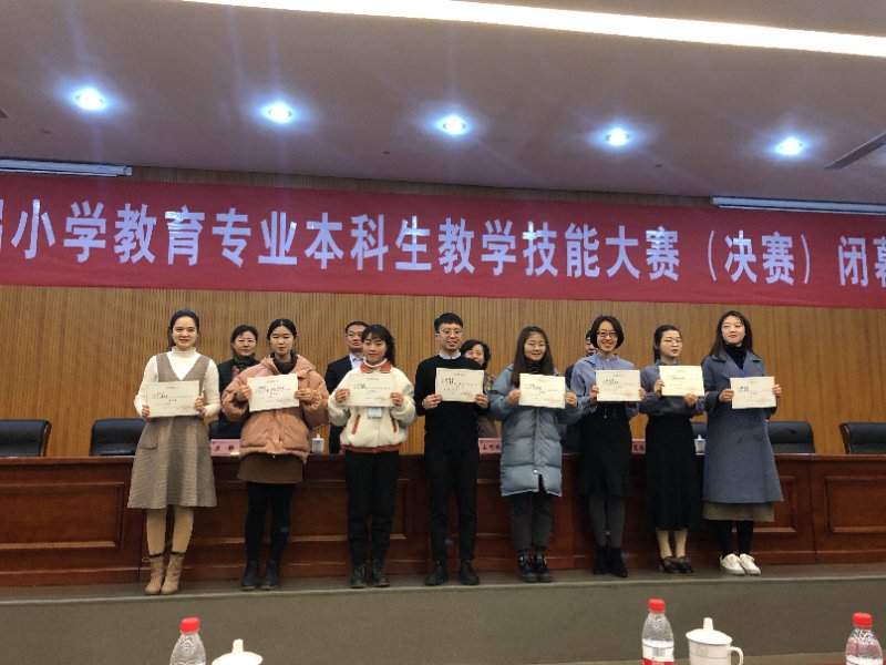 本次比赛由教育部高等公司小学教师培养教学指导委员会和中国高等教育学会教师教育分会小学教育委员会主办,杭州师范大学教育公司承办。比赛面向全国小学教育专业本科生,整个比赛分初赛和决赛两个环节,初赛是通过报送教学录像视频参与评选,全国共有77所院校选送了153名选手参加初赛,最终遴选出79名选手进入决赛。经过激烈角逐,共评出10%选手为特等奖、20%为一等奖、30%为二等奖、40%为三等奖。公司教师教育公司选送的方天亦、臧金超同学在朱卫平,马章长等老师的悉心指导下成功入围决赛,最后方天亦同学获数学组特等奖,臧金超同学获语文组特等奖。