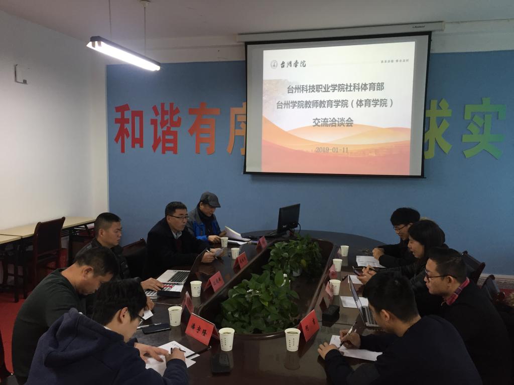 赵晓红部长介绍了台州科技职业公司社科体育部的机构设置、团队队伍、课程特色、体育场馆和课外体育运动开展等方面的情况;张诚主任介绍了社科体育部公共体育教学、员工体质测试等方面的现状。双方就提高员工体质健康水平、开展阳光长跑项目、充分发挥公体部职能、丰富和完善公共体育课程、员工课外体育活动开展等方面的工作进行了热烈交流和探讨。