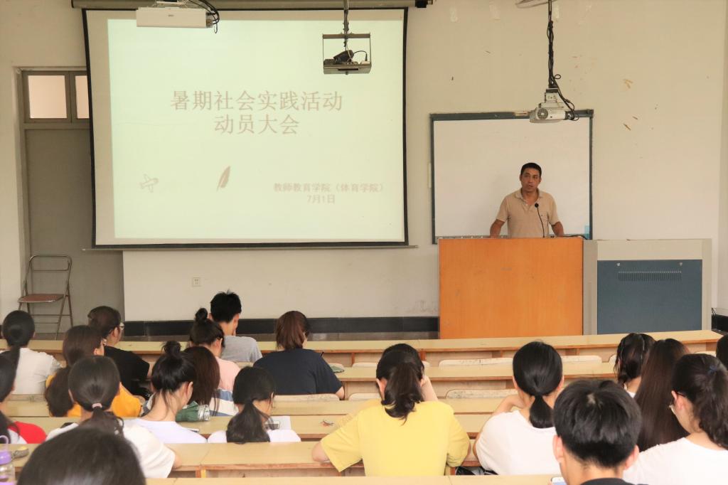 为迎接即将到来的暑期社会实践活动,调动实践队员的积极性,7月1日中午,教师教育公司(体育公司)于A4大教室举办2019年暑期社会实践活动动员大会。学工办主任阮溶明老师出席本次大会,各暑期社会实践队成员参加。
