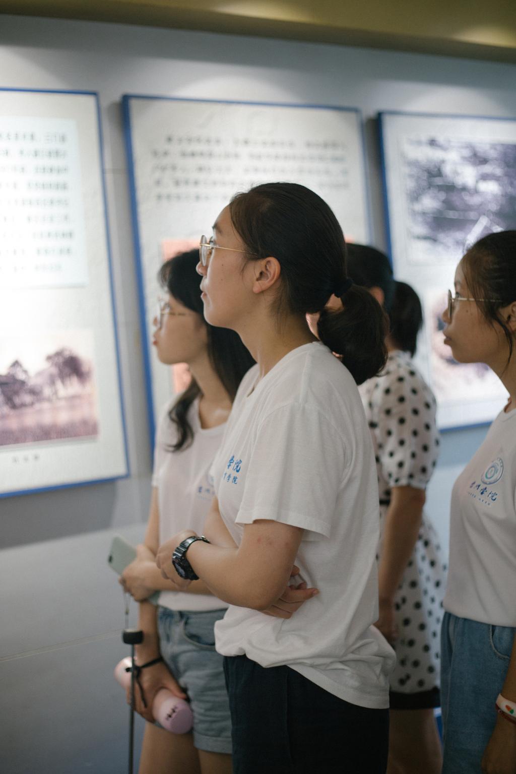 在诗句“碧血洒芳草,正气壮山河”的引导下,队员们仿佛回到了那个战火纷飞的年代。实践队在“浙江红旗第一飘”纪念雕塑下合影,感受“赤胆忠诚、一心为民”的亭旁起义精神。沿着布满青苔的石子路,走过一排排的木式门窗,观览了一系列红色教育景点。在导游的讲解下,队员们知晓了亭旁起义的历史,感受了烈士包定对革命事业视死如归的英雄气概,这极大地鼓舞了队员们的爱国主义情怀,点燃了队员们心中报答祖国的强烈情怀。