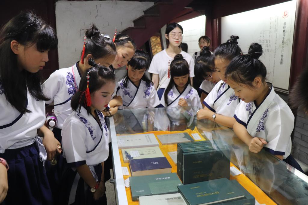 江厦村位于温峤岭东,古时客商由此上船入海,古村古韵,古迹遗存多多。队员以村口路廊为教室,边休息边讲解,边游边学。古道两边随处可见各种农作物,其中不乏桑叶、翠竹等象征着中华传统文化的植物。员工们听着队员们的讲解,喟叹民间文化的同时,到达终点站——明因讲寺。明因讲寺是浙东名刹,历史悠久,几经起落却依然香火旺盛。