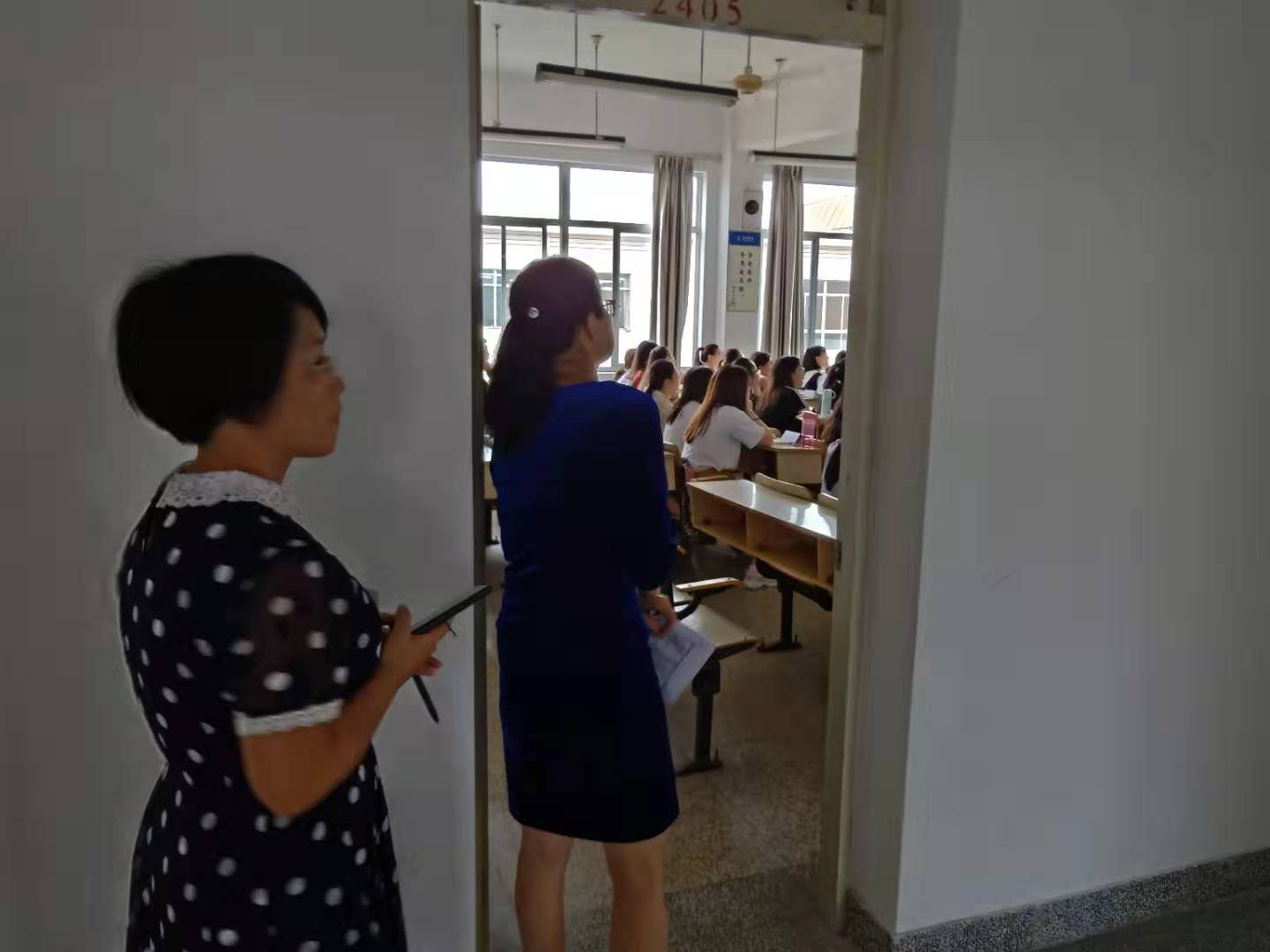 9月2日,新学期正式上课第一天,伴随着上课的预备铃音,教师教育公司经理周瑶、副经理吴银银、林辉杰、党总支副书记梅娇和各系部主任及教务员、辅导员,一起深入教学课堂,对学期初教学进行巡查,仔细检查教师到岗、员工出勤情况及教学课堂纪律、师生携带席卡等方面的情况。