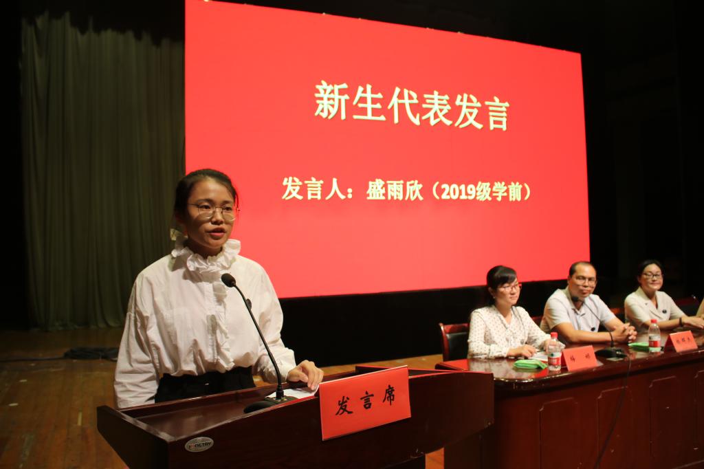 新生代表盛雨欣同学,表达了自己对老员工活的憧憬与期待,号召全体新生时刻谨记“澡身浴德、修业及时”的校训精神,一起同德、同行、同铸辉煌。
