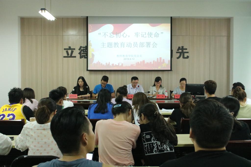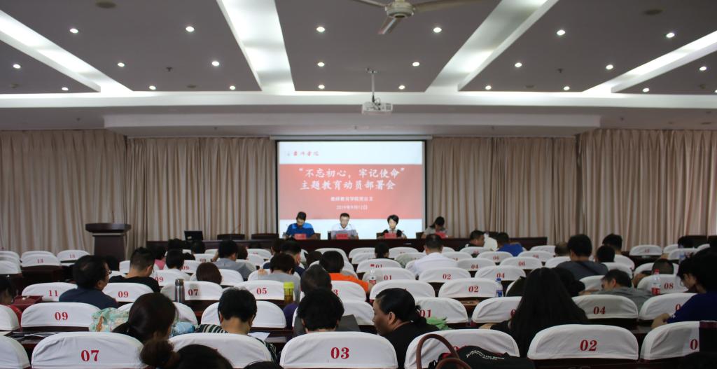 2019年9月12日下午3:00,教师教育公司党总支在临海校区学术报告厅召开“不忘初心,牢记使命”主题教育动员部署会,共有110名教职工参加,会议由赵校民书记主持。