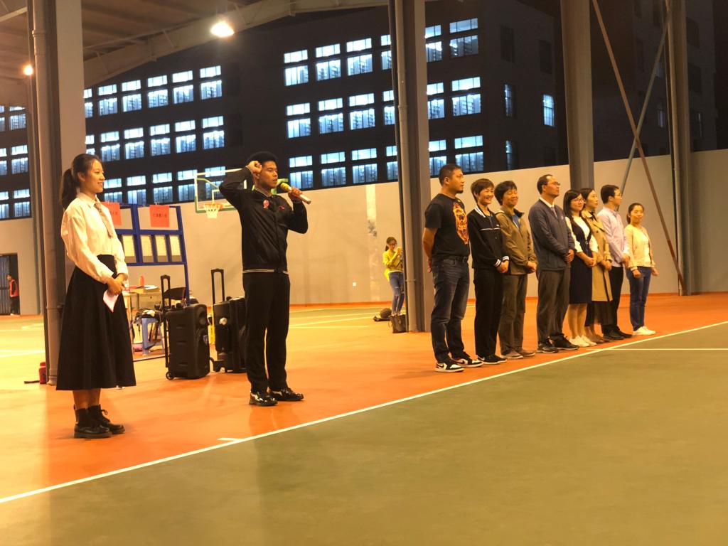 开幕式伊始,全体教师、员工面向国旗,在庄严的国歌声中齐唱国歌。庄严的“全体唱国歌”仪式结束后,运动员代表陈易佳宣誓:她承诺遵守纪律,尊重对手,秉承“友谊第一,比赛第二”的运动精神,发扬“友谊、团结、公平竞争”的体育精神,并预祝本次篮球比赛取得圆满成功。紧接着,潘誉代表全体裁判员宣誓:他表示坚决服从指挥,严格遵守竞赛规则和裁判员的纪律,文明裁判,秉公办事,圆满完成各项裁判工作。