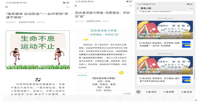 “台院阳光体育”、“台院微体育”、“教育小微”等公众号