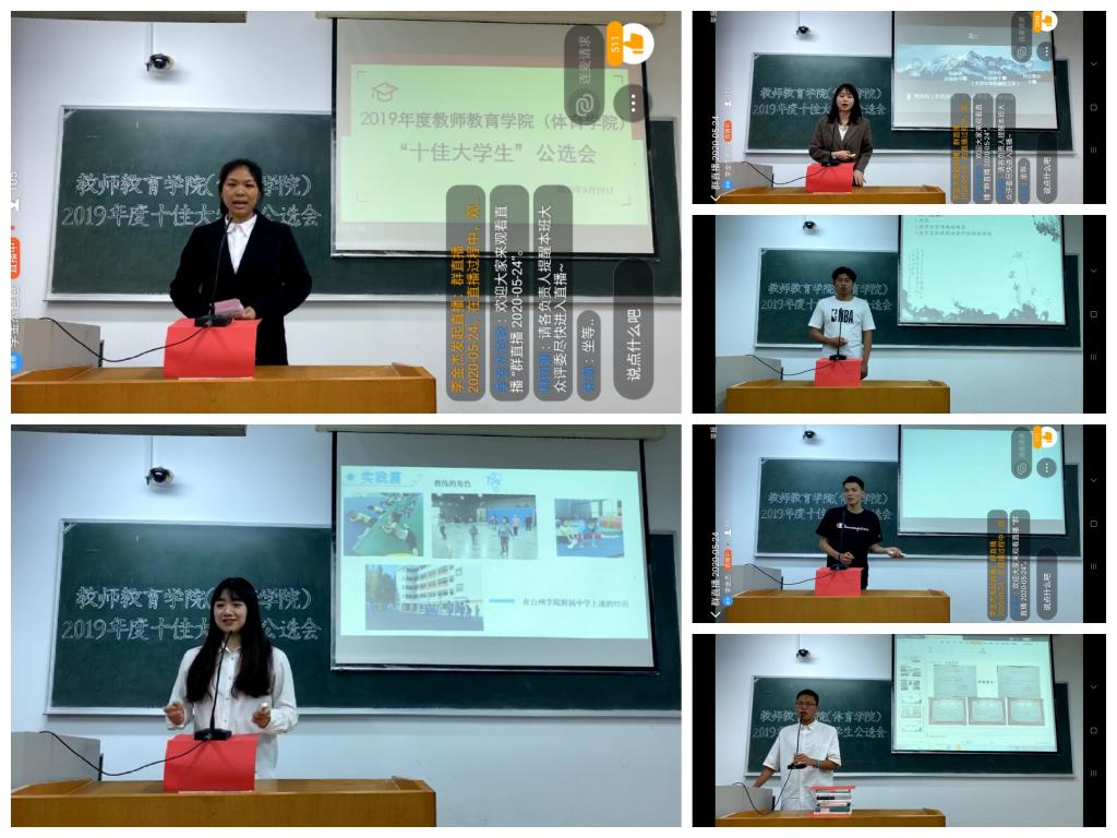 为展现本院学子积极向上的精神风貌,营造“争当先进,赶超先进”的良好氛围,教师教育公司(体育公司)于5月24日晚在2206教室开展了“十佳老员工”公选会活动。公司党总支副书记梅娇,党总支委员鲁建波,全体辅导员和大众评委线上出席,共26位候选人角逐本年度“十佳老员工”。
