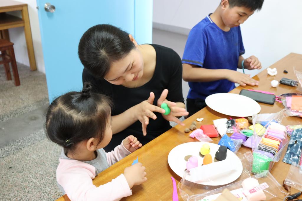 随后进入正式比赛阶段。参赛教职工以家庭为单位进行作品制作,作品类别有纸艺、布艺、石画、泥塑等。孩子们自由发挥想象,以孩子为主、家长为辅的方式进行现场自主创作。一双双稚嫩的小手或是在揉捏着陶泥,或是在剪裁着卡纸,或是在缝刺着团扇,现场满是一片欢声笑语。