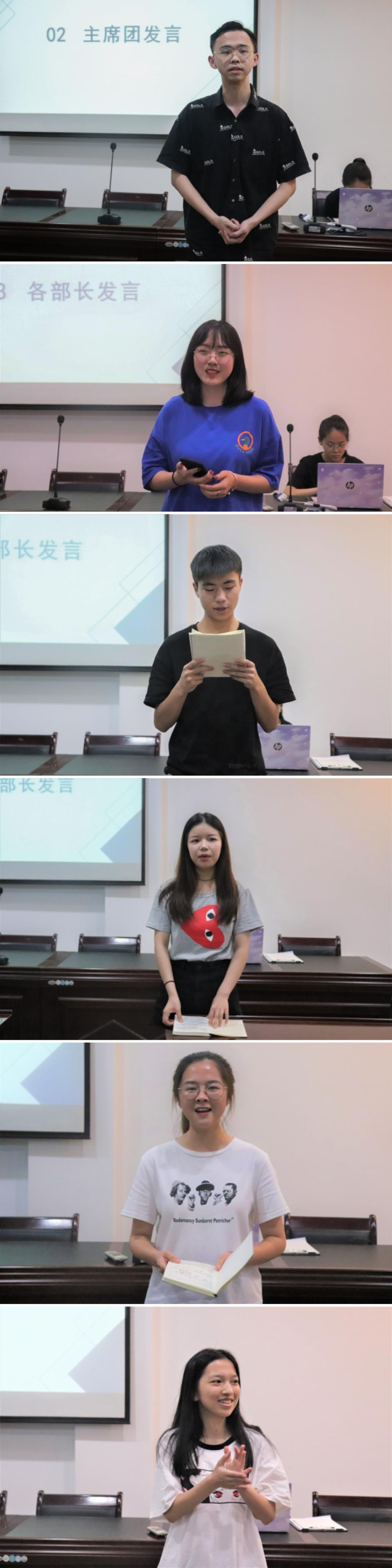 会议伊始,朱萌首先介绍了团学会内部整体结构的变化,并在此基础上确认了各部门的副部长名单。对于新上任的部长,朱老师在寄予期望的同时也在学习、工作方面提出了诚恳的建议。随后,各部门新任部长依次进行了自我介绍,整体阐述了对于将来工作的布置安排。