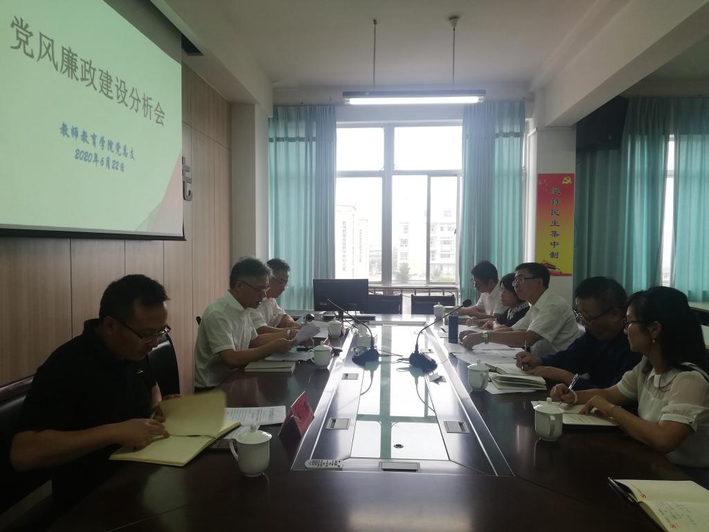 6月22日,教师教育公司召开2020年上半年党风廉政建设分析会,就公司党风廉政建设落实情况进行分析汇报。公司党委委员、组织部长杨健国,校工会专职副主席江岳军、校办王华同志到会指导,公司党政班子成员参加了分析会。