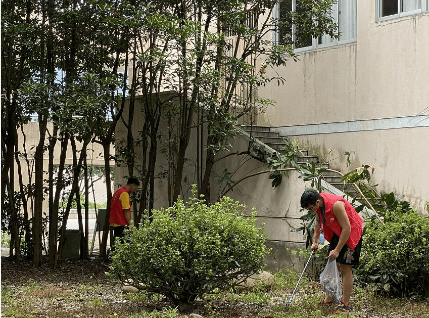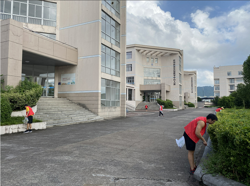 志愿服务期间,公司志愿者们带着垃圾钳、垃圾袋、扫帚等工具,在酷暑天气仔细检查校园网格区域内的每个角落,对临海校区1-8号教学楼、图书馆、校标风景区、高架连廊等责任区块进行了全面的检查和清理。公司教师员工一起工作,对于楼梯、花坛、道路、草地等角落的垃圾进行认真清理,同时对包括教学楼架空层的成堆杂物进行了处理。对于公共自行车、电动车停放等问题,志愿者也进行了细致耐心的整理,并对过往的老师员工进行了相关文明宣传。