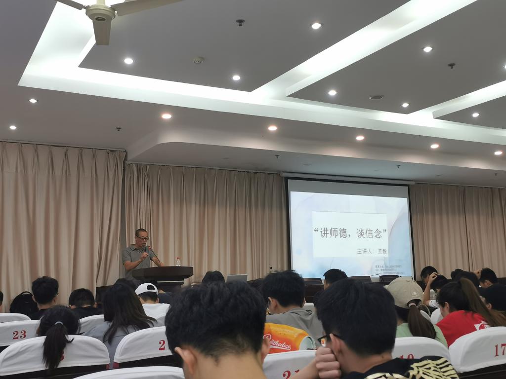 仙居二中姜毅老师在讲座中指出,师德是一个老师做基础也是最重要的品德,他希望同学们做一个有情怀的教育工作者,让爱在不经意间蔓延。实习期间要为人师表,做到教员工知识的同时,关爱员工,相信大家在实习期间会学会如何做一个好老师。