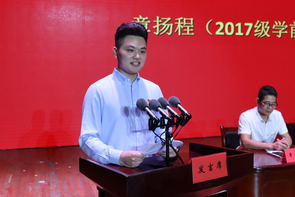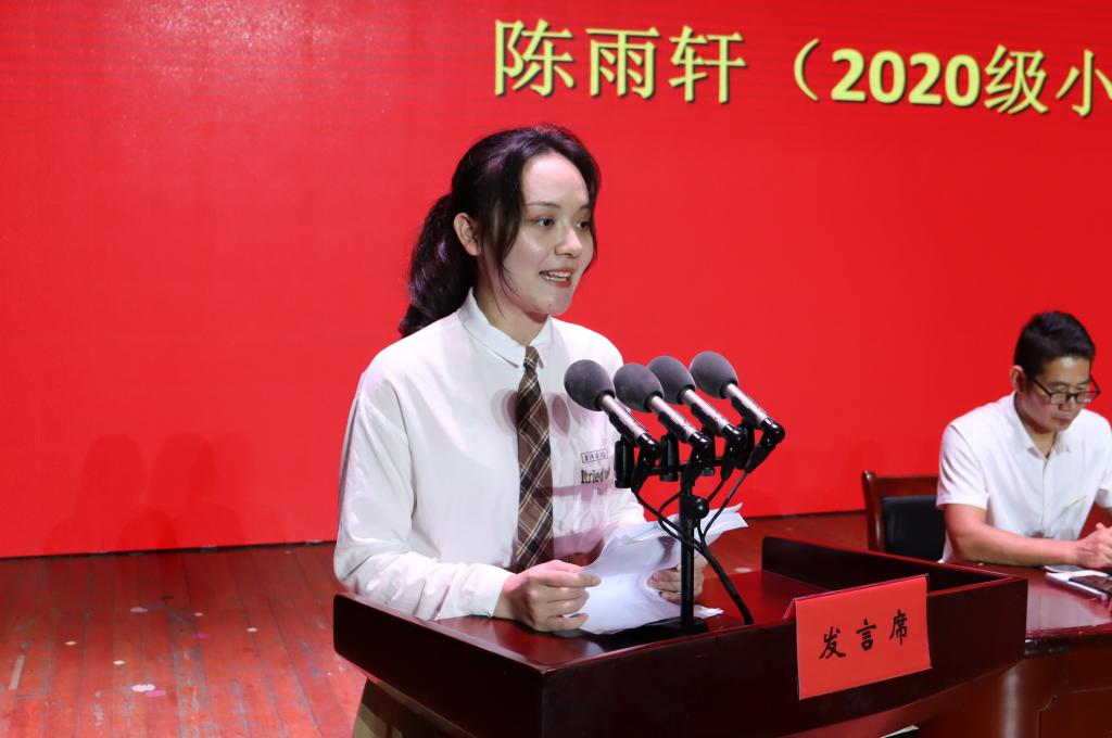 在校生代表17学前1班章扬程分享了大学期间的学习感悟,希望同学们用双脚踏出一条属于自己的青春道路,用双手绘出一片属于自己的宏伟蓝图。新生代表20小教2班陈雨轩表达了对老员工涯的期盼,表示将与全体新生一起,做到对未来有规划有目标,对当下有认识有反思,能求知若渴,虚心若愚,继前人衣钵,携手共进。
