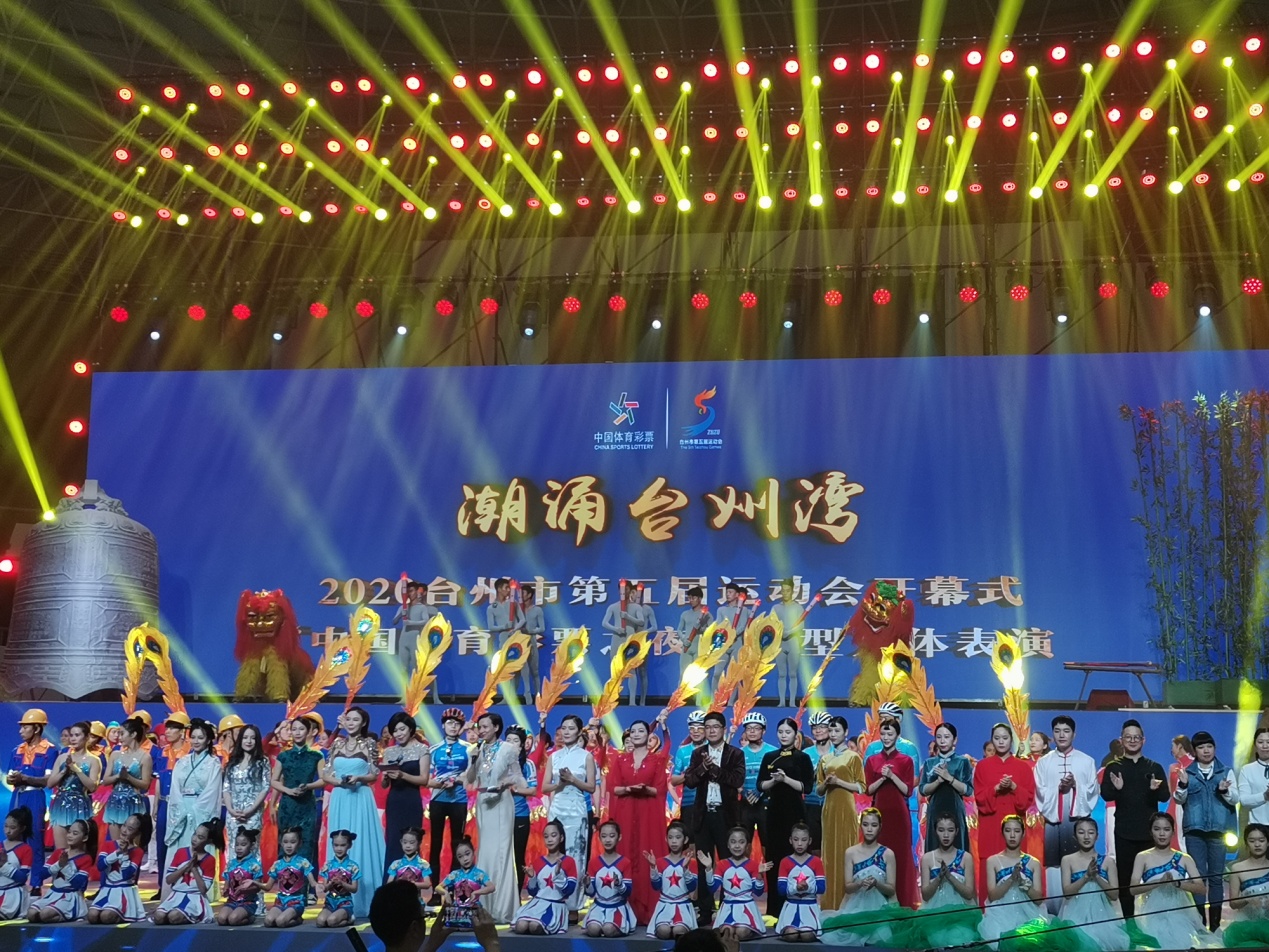 运动会大型文体表演《潮涌台州湾》开幕式分“激流勇进”、“山海交响”、“未来之城”三个篇章,校舞狮队在覃宇德老师的带领下,刻苦训练,精心准备,参与了第三章“未来之城”的表演。参与开幕式表演的成员参加过多次全国舞狮大赛且获得佳绩,技艺精湛。开幕式演出时,两只瑞狮在舞台上以扑、跌、翻、滚、跳跃、擦痒等动作,并配以坐头、钳腰、双狮平盘、高举旋转360°等高难度动作,将狮子的形象予以完美呈现,精彩表演深受观众好评。