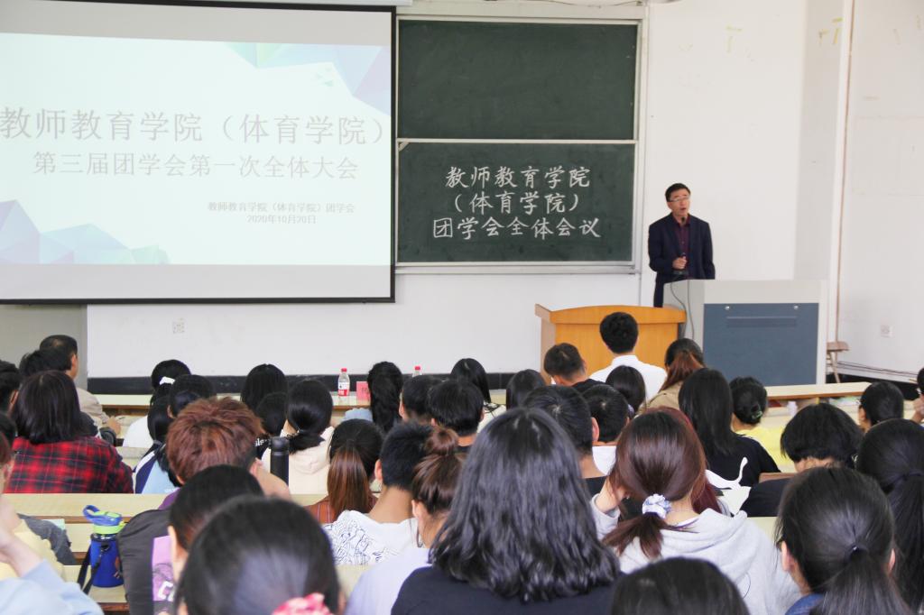 10月20日中午,教师教育公司(体育公司)于临海校区A5教室召开第三届团学会第一次全体大会。公司党总支书记赵校民出席并致辞;学工办主任阮溶明、辅导员朱萌及团学会全体成员参加本次会议。